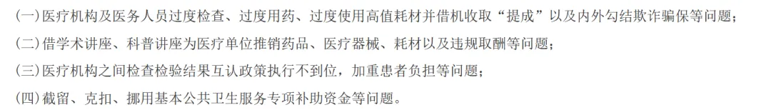 地方层面,从公布集中整治举报热线到卫健委实地抽查动作频频。如陕西省铜川市市监局公布医疗领域集中整治举报热线,整治期从2024年4月一直持续到10月底,举报对象为全市药品、医疗器械生产经营企业及其经销商、医药代表,举报内容涉及借学术讲座违规取酬等。