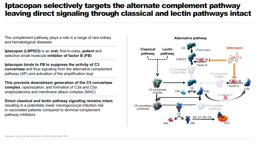 Fabhalta是一种口服特异性替代补体通路因子B抑制剂,能高效抑制补体替代通路中因子B。它可能在治疗多种替代通路功能异常导致的疾病同时,不影响其它补体通路介导的对微生物入侵的免疫反应,降低患者受到感染的风险。