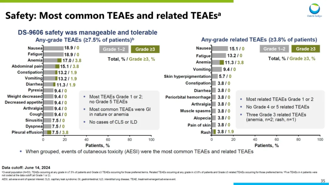 导致停药:Dato-DXd组为7%,多西他赛组为14%。