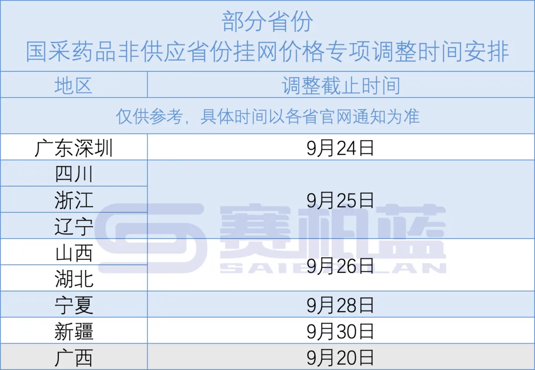 9月23日,四川、江西、宁夏等省发布通知,展开国采非供应药品价格调整。