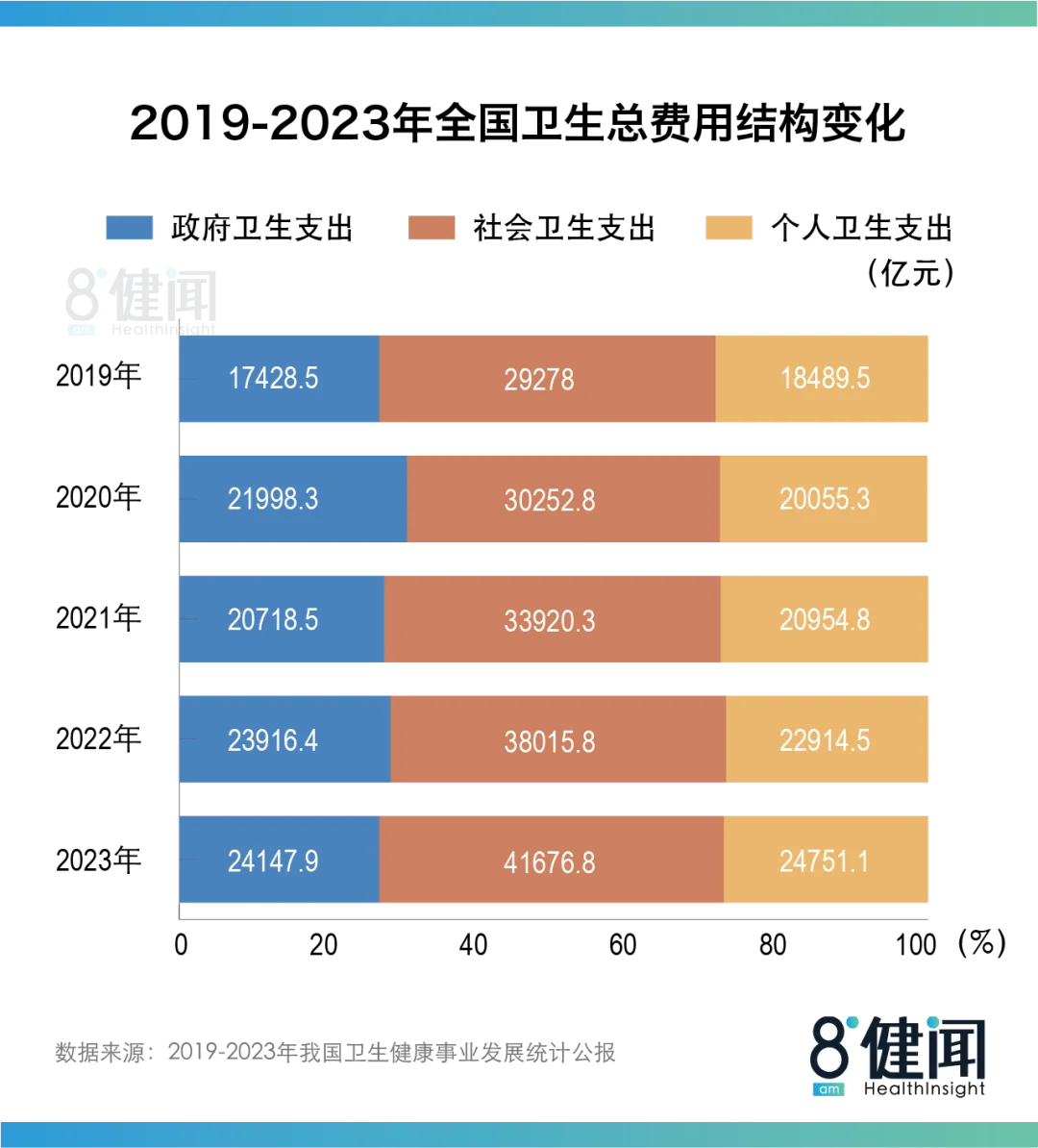 在这背后,公共筹资责任不断强化。社会卫生支出占卫生总费用比重由2019年的44.9%增至2023年的46%。