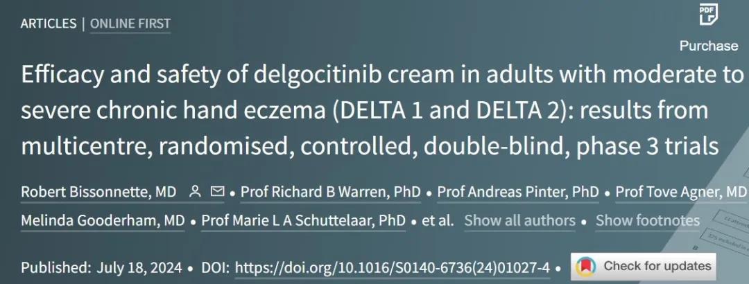 Delgocitinib的批准主要是基于包括DELTA1和DELTA 2临床3期试验的结果,这些试验评估了delgocitinib相较于安慰剂的安全性和疗效。两项试验均达到了其主要和所有次要终点,详细试验结果发布于今年7月的《柳叶刀》。