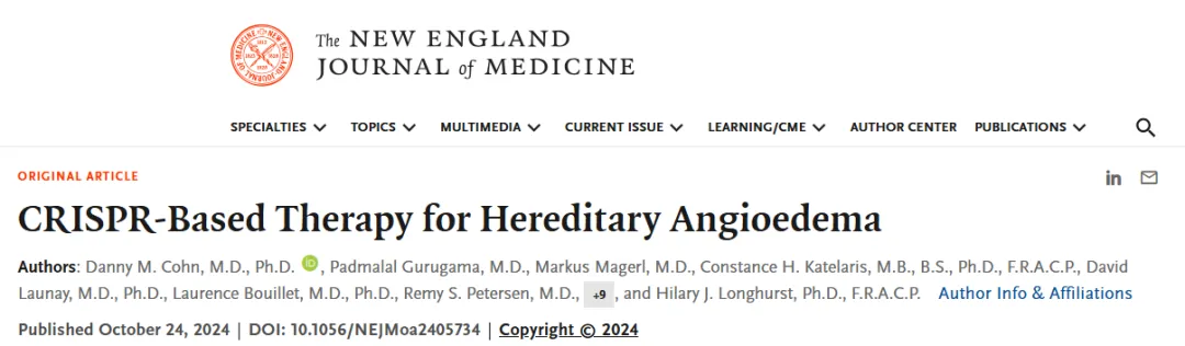 近日,由诺奖得主Jennifer Doudna联合创办的基因编辑公司Intellia Therapeutics宣布了其体内CRISPR基因编辑疗法NTLA-2002针对遗传性血管性水肿(HAE)患者的I/II期临床的II期研究获得积极数据。数据表明,NTLA-2002具有通过一次注射消除HAE的潜力。相关研究结果同一天发表在顶级医学期刊NEJM杂志上。