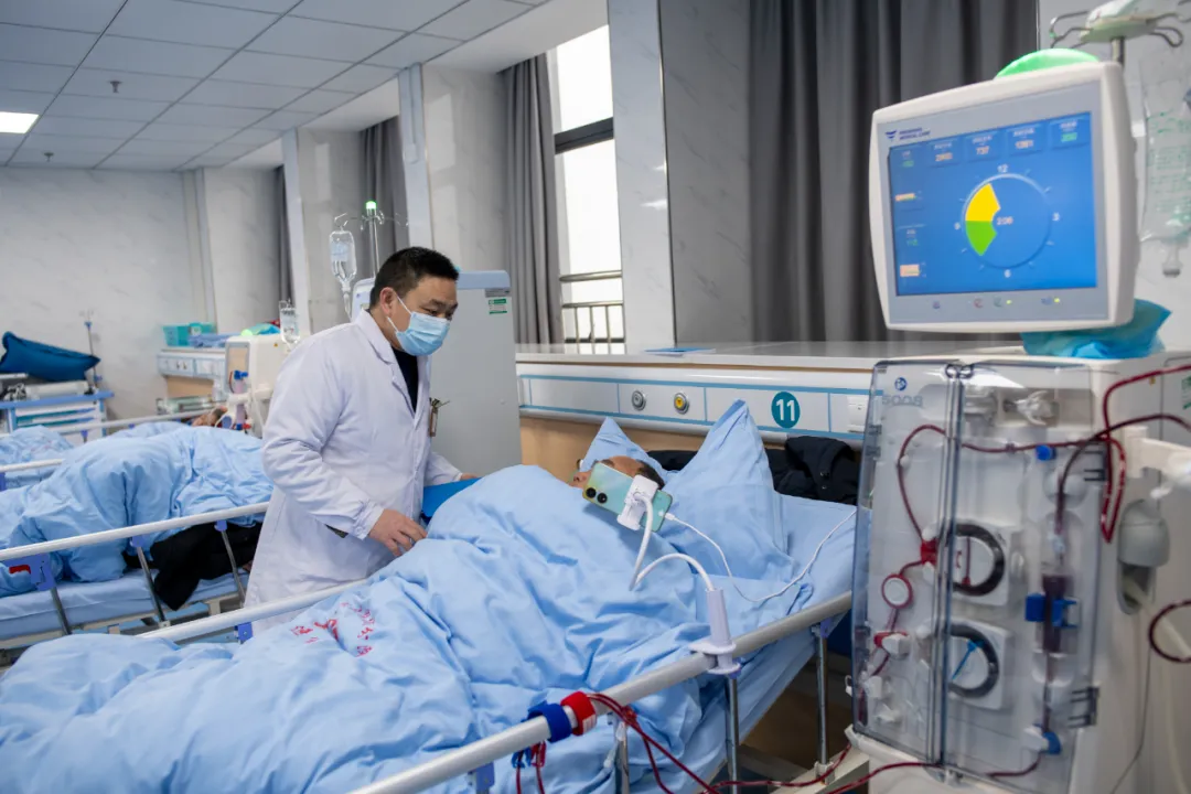 2月1日,在重庆市忠县拔山中心卫生院血透室内,医护人员正在为患者进行血液透析治疗。自2022年5月拔山中心卫生院开设血液透析科以来,周边已有近百名患者受益。
