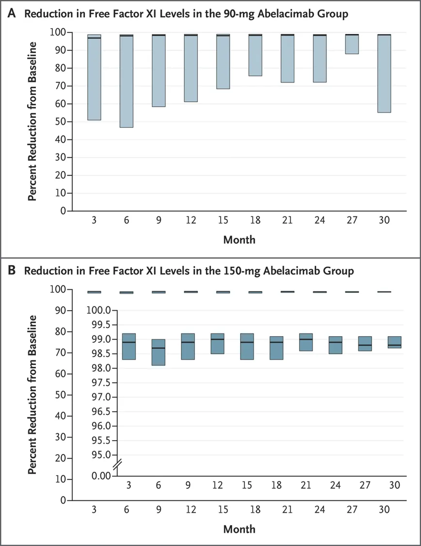 ▲Abelacimab显著减少患者游离凝血因子XI水平(图片来源:参考资料[2])