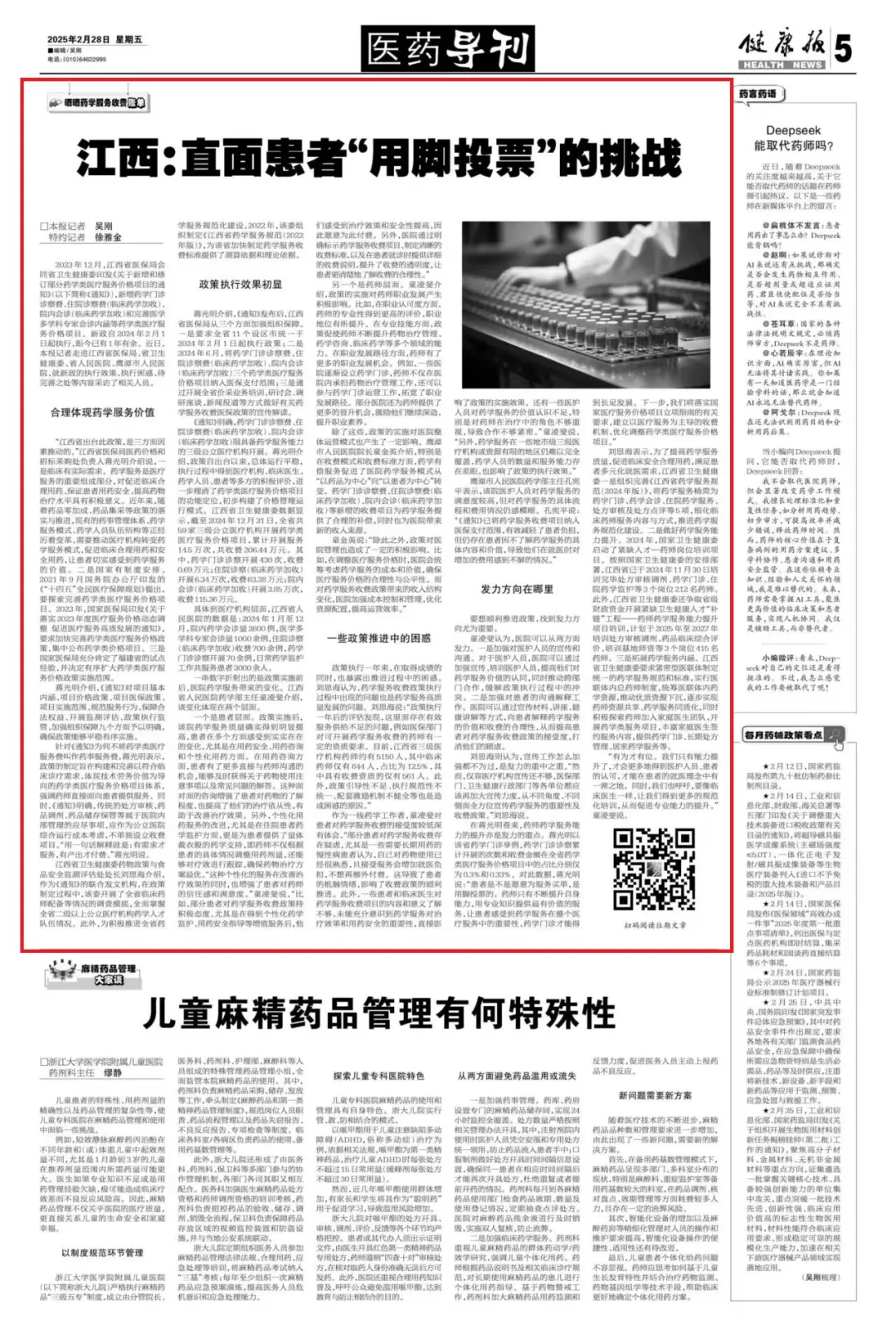 刘思海表示,为了提高药学服务质量,促进临床安全合理用药,满足患者多元化就医需求,江西省卫生健康委一是组织完善《江西省药学服务规范(2024年版)》,将药学服务精简为药学门诊、药学会诊、住院药学服务、处方审核及处方点评等5项,细化临床药师服务内容与方式,推进药学服务规范化建设。二是做好药学服务能力提升。2024年,国家卫生健康委启动了紧缺人才—药师岗位培训项目。按照国家卫生健康委的安排部署,江西省已于2024年11月30日培训完毕处方审核调剂、药学门诊、住院药学监护等3个岗位212名药师。此外,江西省卫生健康委还争取省级财政资金开展紧缺卫生健康人才“补链”工程——药师药学服务能力提升项目培训,计划于2025年至2027年培训处方审核调剂、药品临床综合评价、培训基地师资等3个岗位415名药师。三是拓展药学服务内涵。江西省卫生健康委要求紧密型医联体制定统一的药学服务规范和标准,实行医联体内总药师制度,统筹医联体内药学资源,推动优质资源下沉,逐步实现药师资源共享、药学服务同质化,同时积极探索药师加入家庭医生团队,开展药学类服务项目,丰富家庭医生签约服务内容,提供药学门诊、长期处方管理、居家药学服务等。