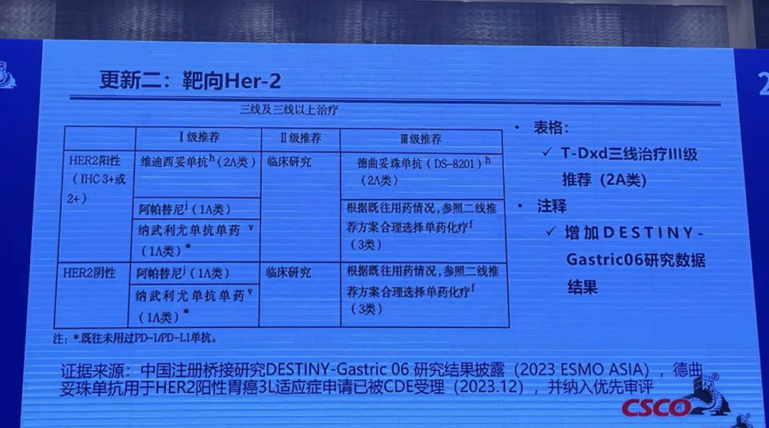 后基于DESTINY-Gastric 01研究的国际队列数据,德曲妥珠单抗分别于2021年1月和7月获FDA和EMA批准晚期胃癌适应症。并依据中国亚组数据,于2022年获NMPA批准,在国内上市。