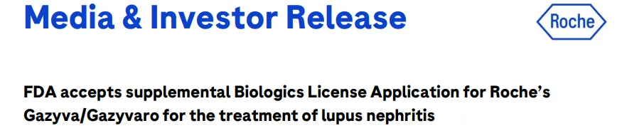 3 月 5 日,罗氏宣布,美国 FDA 已接受该公司奥妥珠单抗 (Obinutuzumab,Gazyva/Gazyvaro) 用于治疗狼疮性肾炎的补充生物制品许可申请 (sBLA)。FDA 预计将在 2025 年 10 月之前做出审批决定。奥妥珠单抗此前已获批治疗多种淋巴瘤适应症,本次是该药递交的首个非肿瘤适应症上市申请。