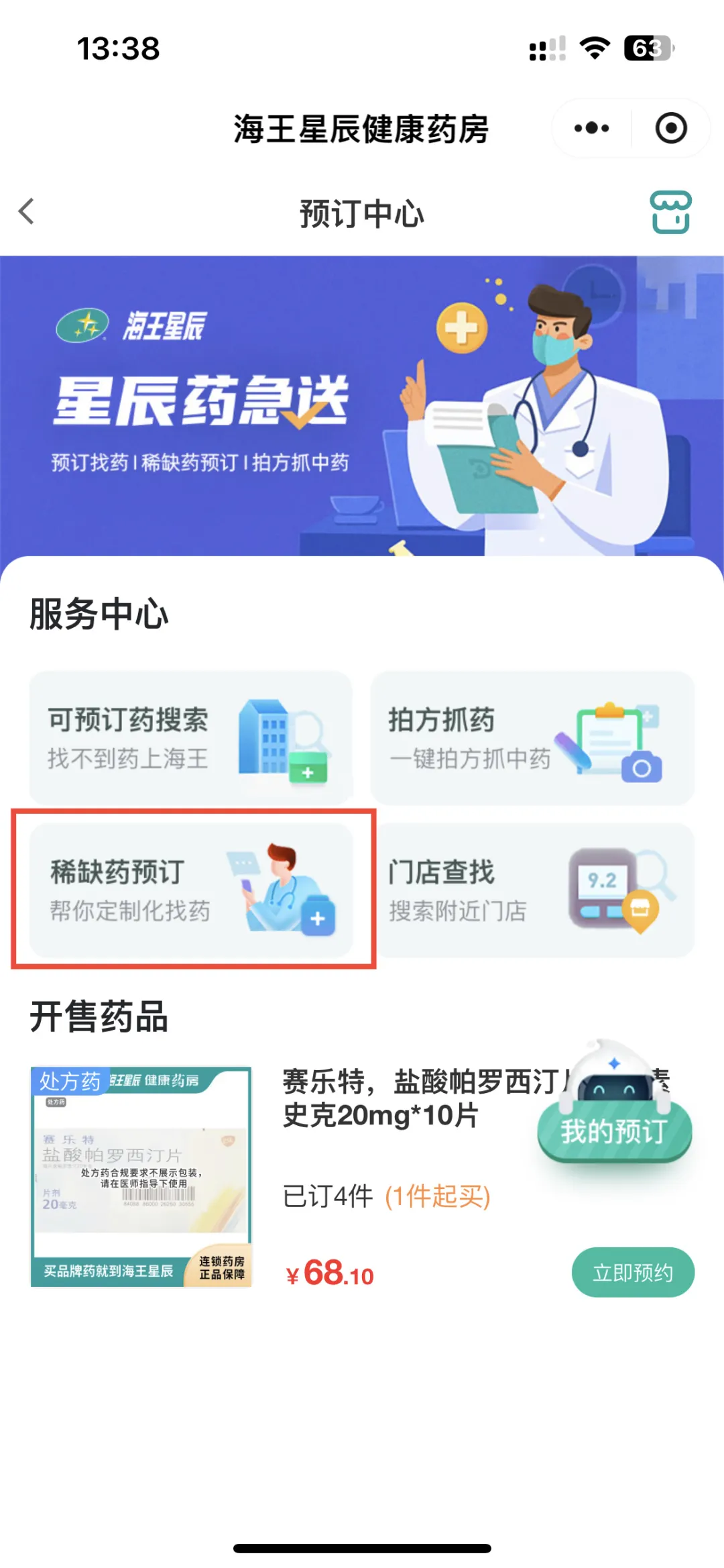 点击“稀缺药预订”