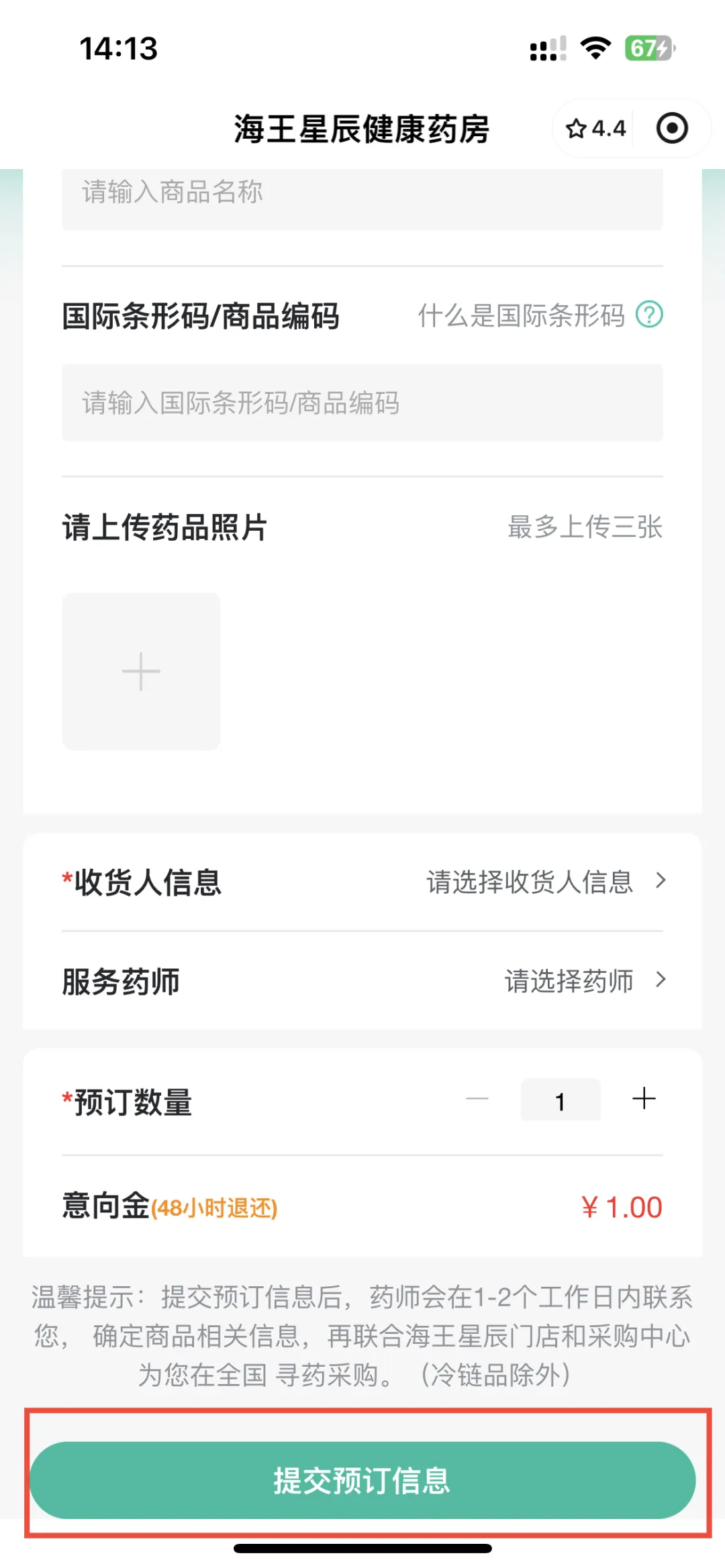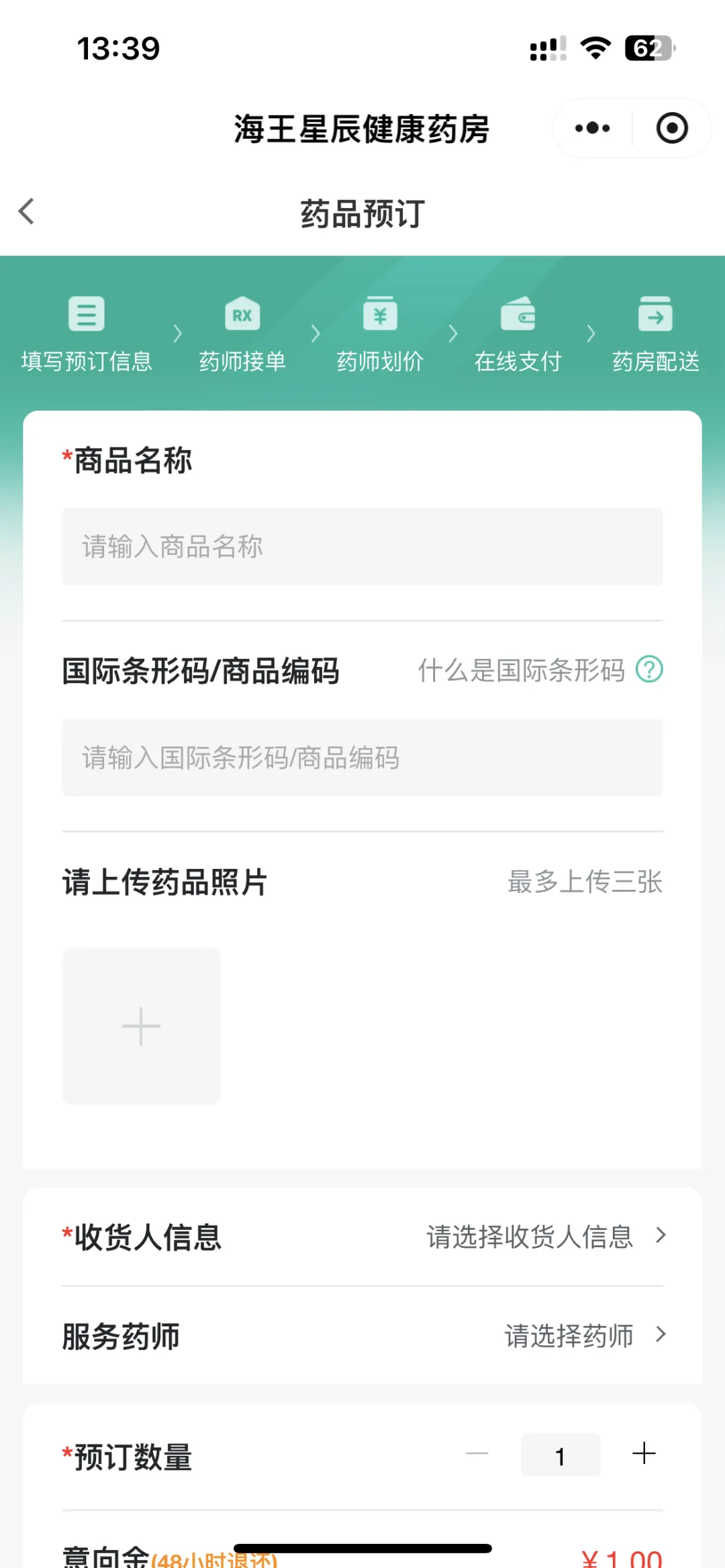 填写药品信息、收货人信息