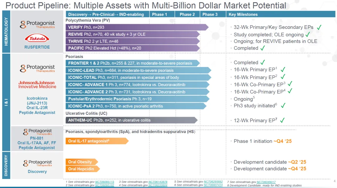 JNJ-2113(Icotrokinra)为Protagonist的核心管线,与强生合作进行临床开发,同时探索多个适应症。