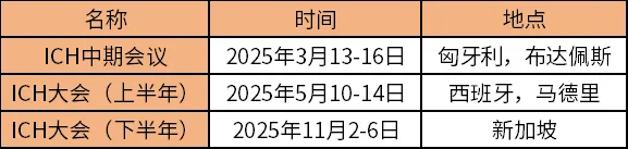 2025年ICH大会安排