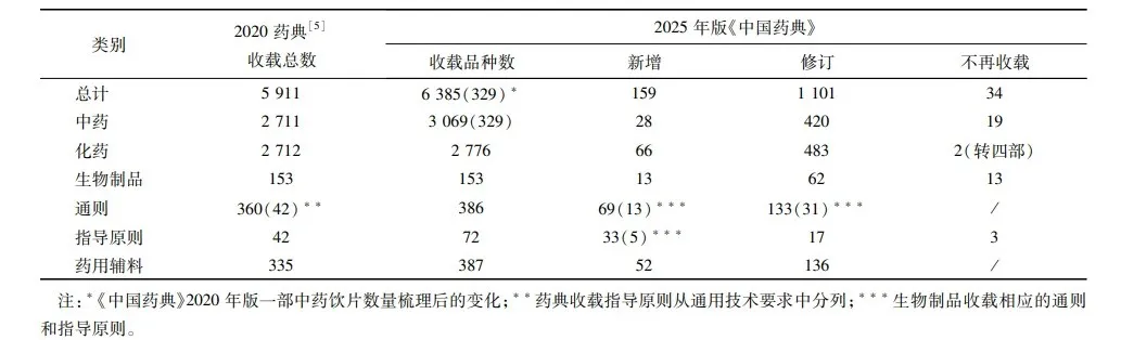 收载品种总计6385种,新增159种,修订1101种,不再收载32种。