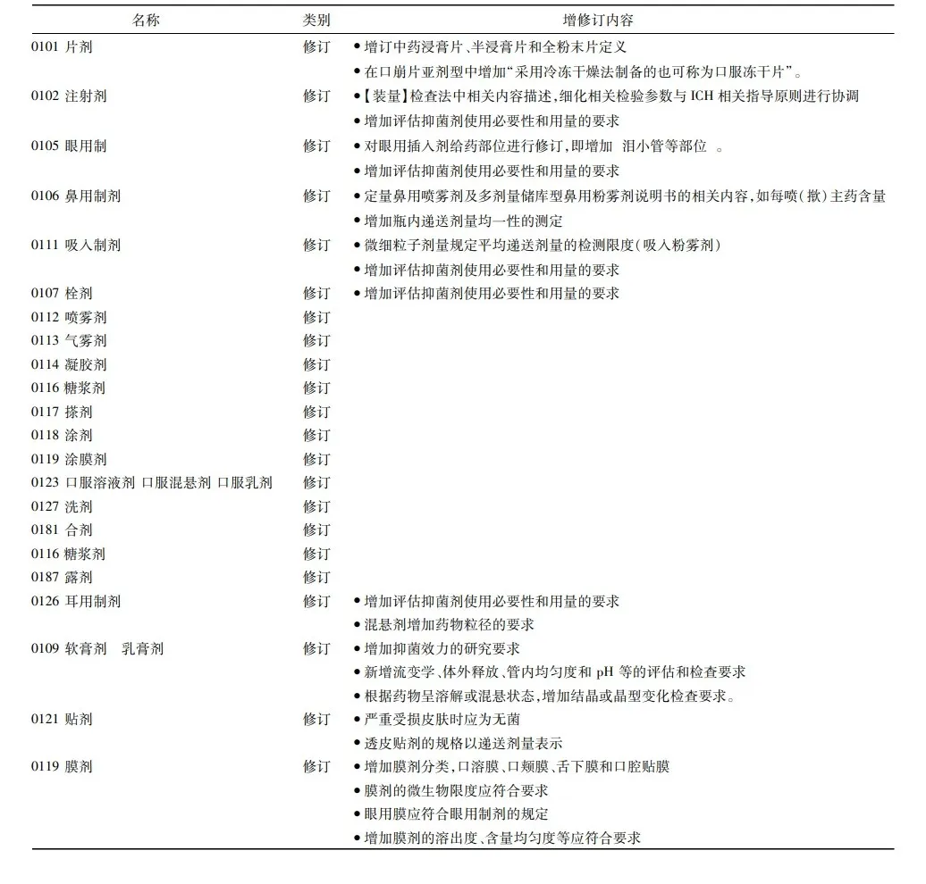 表3 2025 年版《中国药典》制剂通则制修订情况