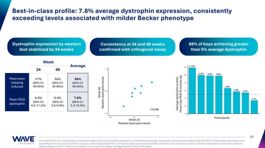 ▲WVE-N531显著提高抗肌萎缩蛋白的表达(图片来源:Wave Life Sciences公司官网)