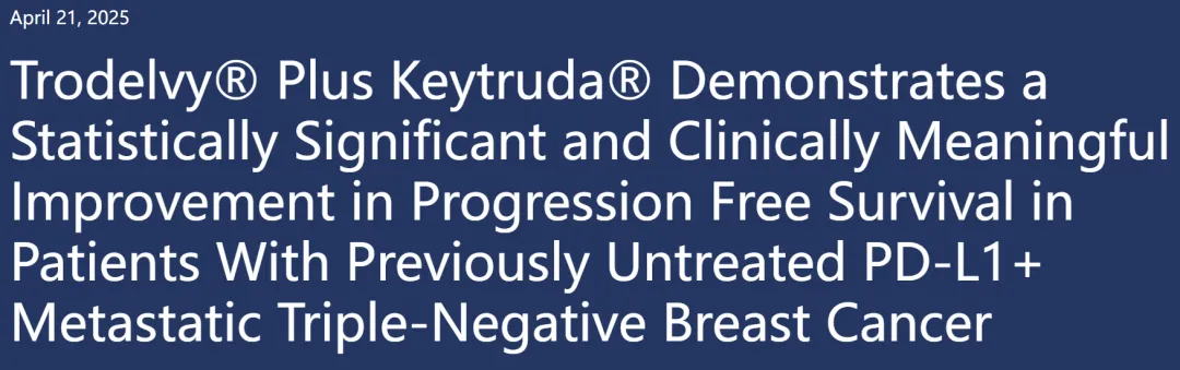 在这项试验中,Trodelvy联合Keytruda被用于治疗无法手术切除的局部晚期或转移性三阴性乳腺癌患者,且要求肿瘤表达PD-L1蛋白。研究结果显示,与Keytruda联合化疗的对照组相比,Trodelvy+Keytruda组合显著降低了疾病进展或死亡的风险,成功达到主要终点无进展生存期(PFS)。虽然具体数据尚未披露,吉利德表示将在未来的医学会议上公布详细结果。