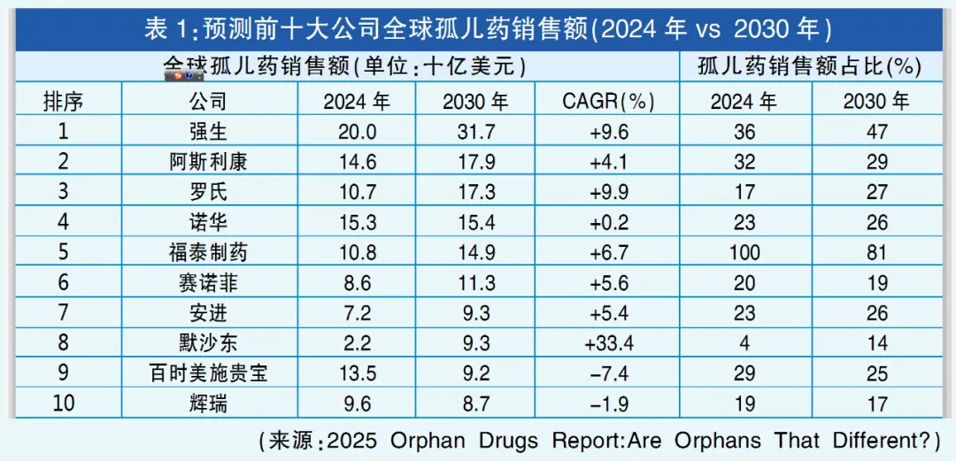 未来几年里,孤儿药将继续超过主流药品的发展步伐。预计2025-2030年,这类药物销售额复合年增长率(CAGR)将超过10%,而非孤儿处方药的这一增速为7.5%。
