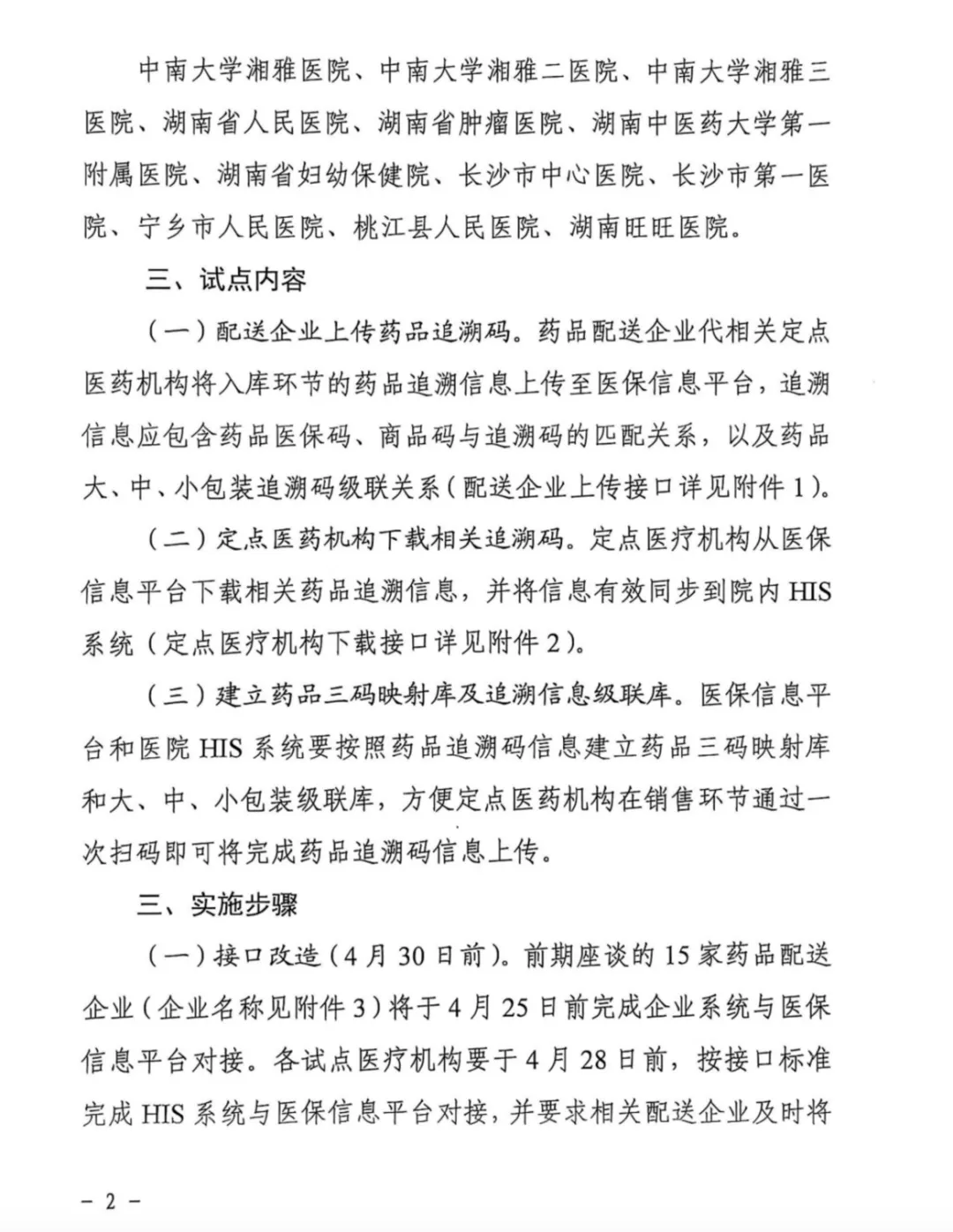 近日,湖南省医保局发布《关于开展配送企业代定点医疗机构上传入库环节追溯码试点工作的通知》(文末附通知全文),要求国控湖南、华润湖南新特药等15家省内较大规模配送企业代湘雅及省市县共12家定点医院上传药品追溯码至医保信息平台,5月15日前试行定点医疗机构从医保平台下载药品追溯信息并同步到医院HIS系统。