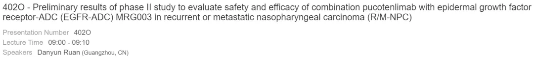 ADC新药MRG003+PD-1抗体普特利单抗治疗EGFR突变、复发性或转移性鼻咽癌的二期临床最新数据。