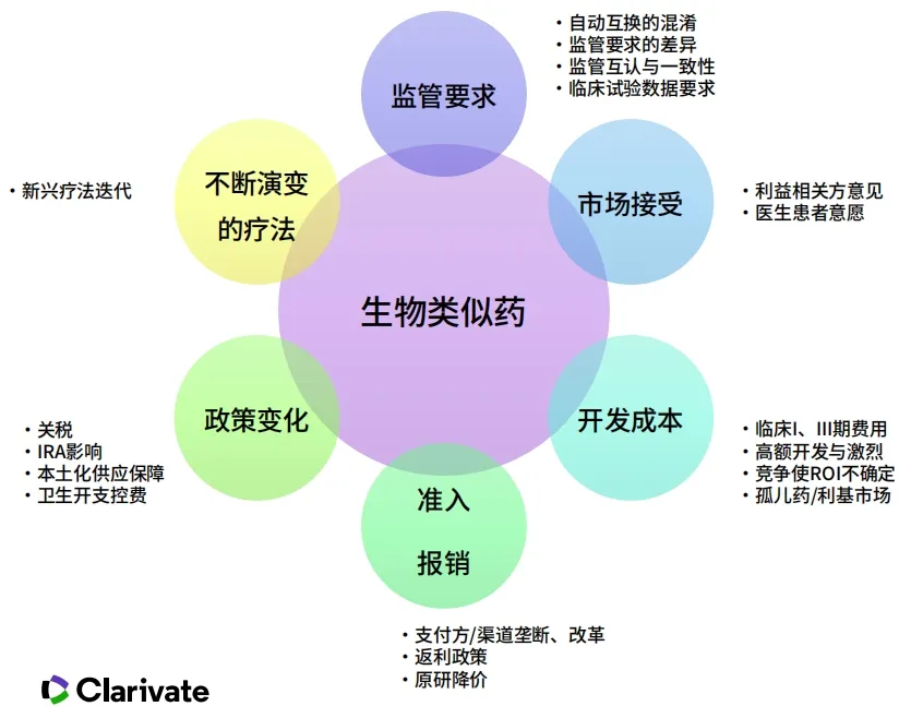 目前对于生物类似药市场存在很多方面的挑战,包括监管要求、开发成本高、医生与患者接受度、市场准入障碍、政策的变化及不断演变的疗法等。