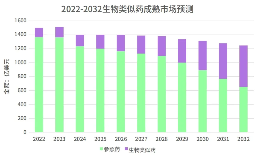 根据科睿唯安的预测:在未来十年内,由于相应高价品牌的多种具有成本效益的生物类似药的持续采用和推出,预计销售额将增长强劲,2032 年将会达到 50 亿美金。