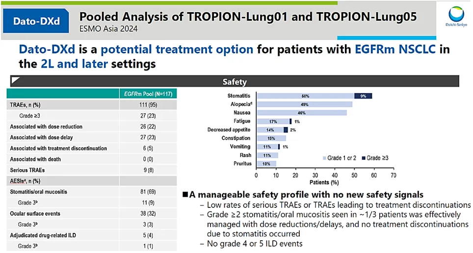 TRAE发生率为56.0%,低于多西他赛组的71.7%,未报告间质性肺病(ILD)。