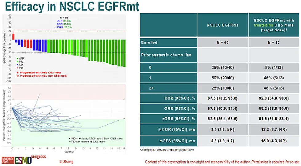 TKI和铂类化疗治疗均失败的EGFR突变非鳞NSCLC患者中,ORR和DCR分别为33.3%和92.3%。此外,百利天恒EGFR/HER3