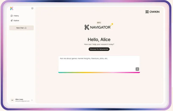 今年5月,Owkin推出K Navigator,这是一个AI驱动的生物医学科研助手,为研究人员免费开放以加速科学发现。