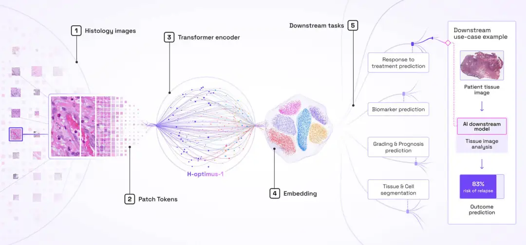 图:Bioptimus推出的H-OPTIMUS-1模型,在超过100万张数字病理图像上训练而成
