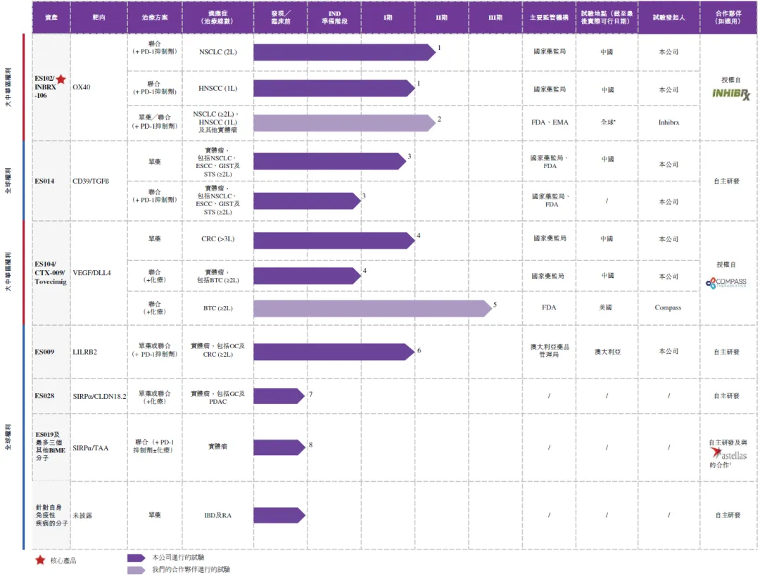 therapeutics引进。目前,公司已针对ES104在中国完成一项针对经多线治疗的晚期结直肠癌患者的I/II期临床第一阶段研究。结果显示,ES104