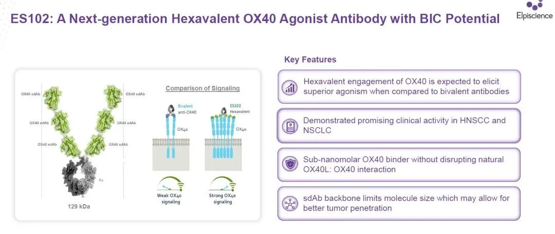 ES102:一款具有同类最佳潜力的OX40激动剂抗体,是公司的核心产品。从Inhibrx
