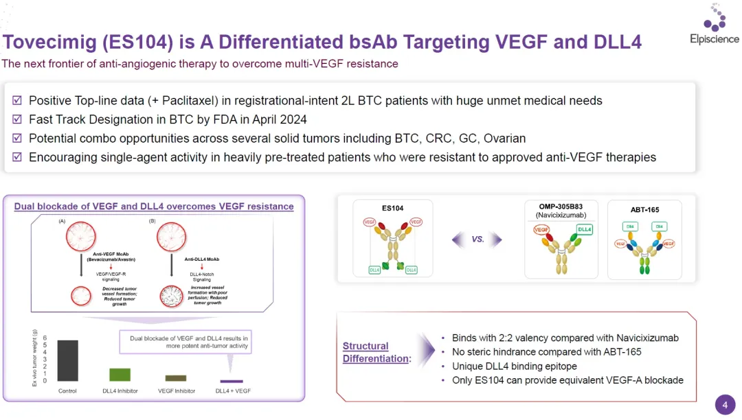 在包括胆道癌(BTC)、结直肠癌(CRC)和胃癌(GC)在内的多种肿瘤类型中展现出显著抗肿瘤活性。Compass正在美国开展一项注册意向性的II/III期临床试验,评估ES104(CTX-009)联合紫杉醇用于胆道癌(BTC)患者的疗效。2025年4月公布的关键数据显示,该组合治疗方案的客观缓解率(ORR)达到
