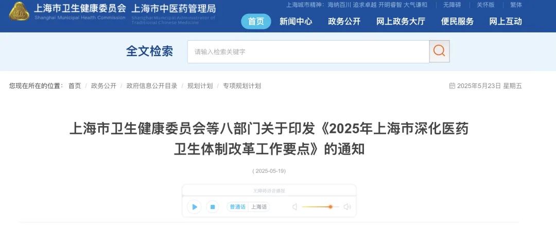 2025年上海市深化医药卫生体制改革工作要点