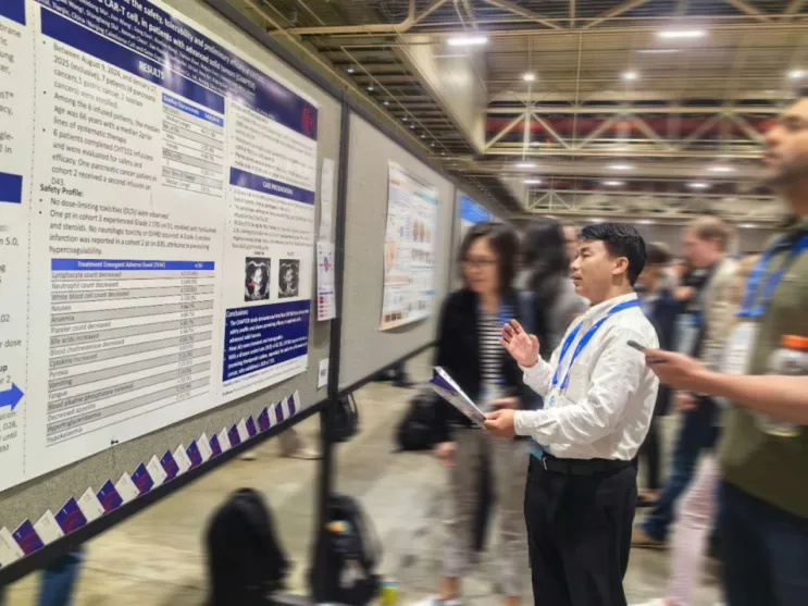 当前 UCAR-T 管线仍以血液瘤为主,但实体瘤领域也在逐渐兴起。同时,除 BCMA、CD19 等经典靶点外,新兴靶点开发也呈现多元化趋势。本届 ASGCT 年会期间,南京奇迹生物科技有限公司首次披露 CHT102(靶向间皮素)治疗晚期胰腺癌的 1 期临床数据,这是靶向 MSLN 的 UCAR-T 疗法首次应用于胰腺癌等实体瘤的人体临床试验,并初步验证其良好的安全性、耐受性和抗肿瘤潜力。
