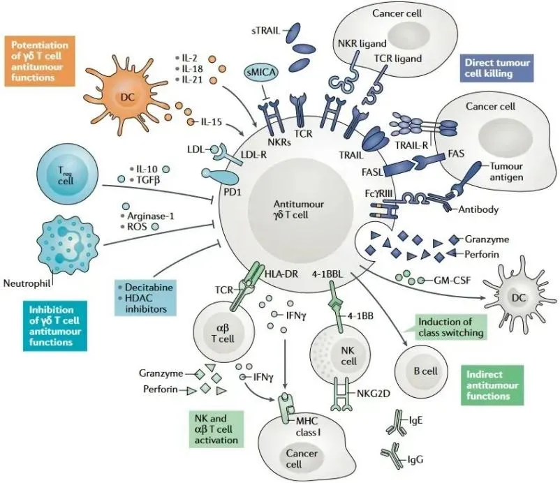 ▲ 抗肿瘤γδ T 细胞的功能和调节机制
