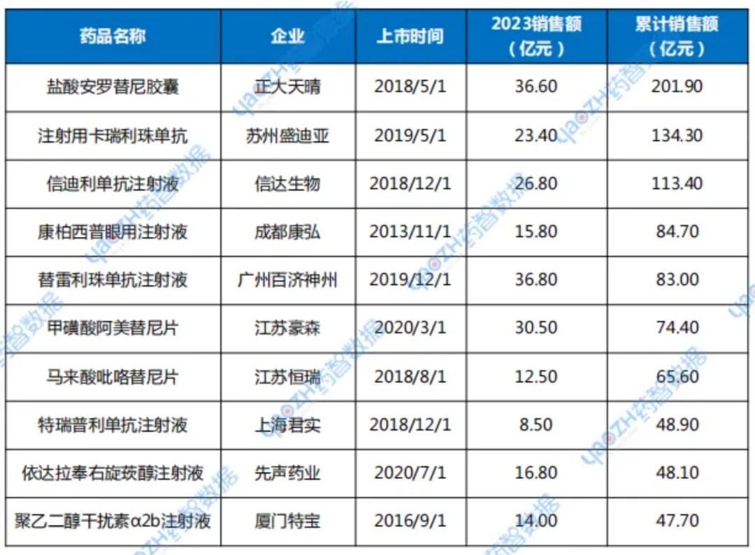 (2023年国内1类新药销售排名情况 图源:药智数据)