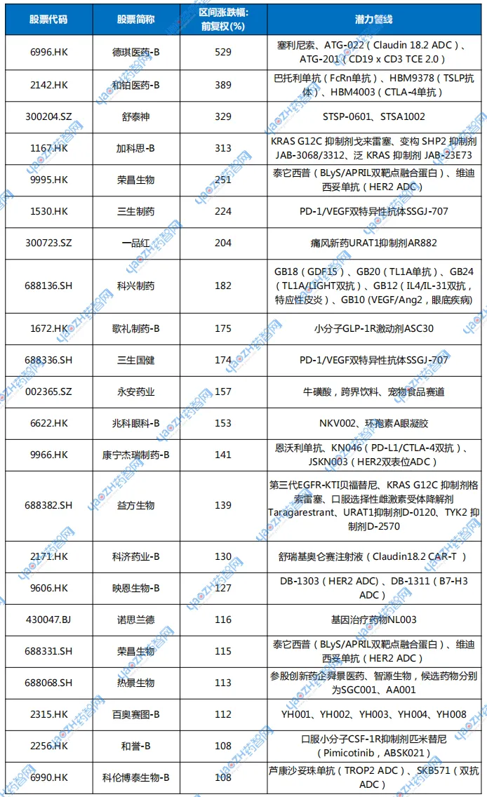 表1 2025.01.02-2025.06.03区间涨幅超过100%的药企