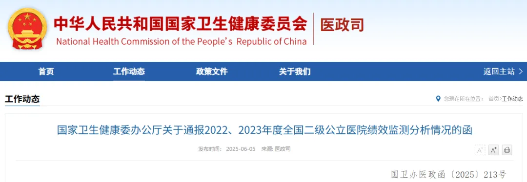 《2023年度全国二级公立医院绩效监测分析情况通报》显示: