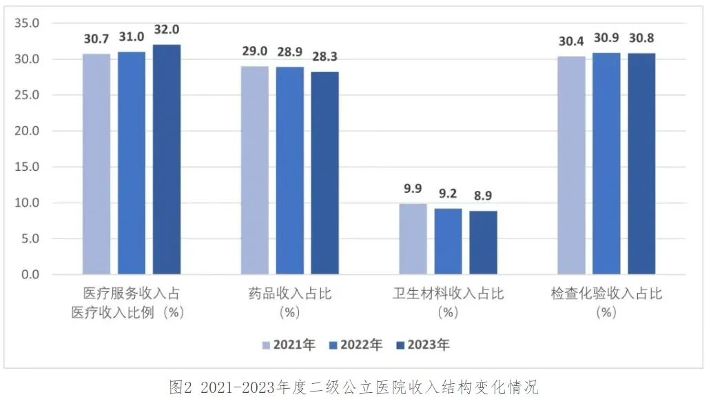《2023年度全国二级公立医院绩效监测分析情况通报》显示,2023年公立医院收入结构持续优化。
