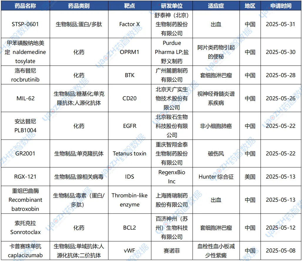 5月重点申请上市药物