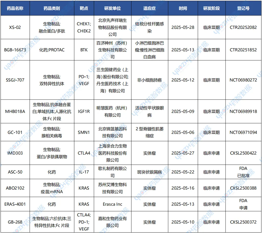 全球新药2025年5月重点项目
