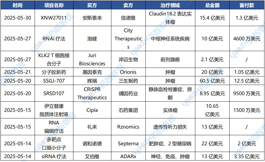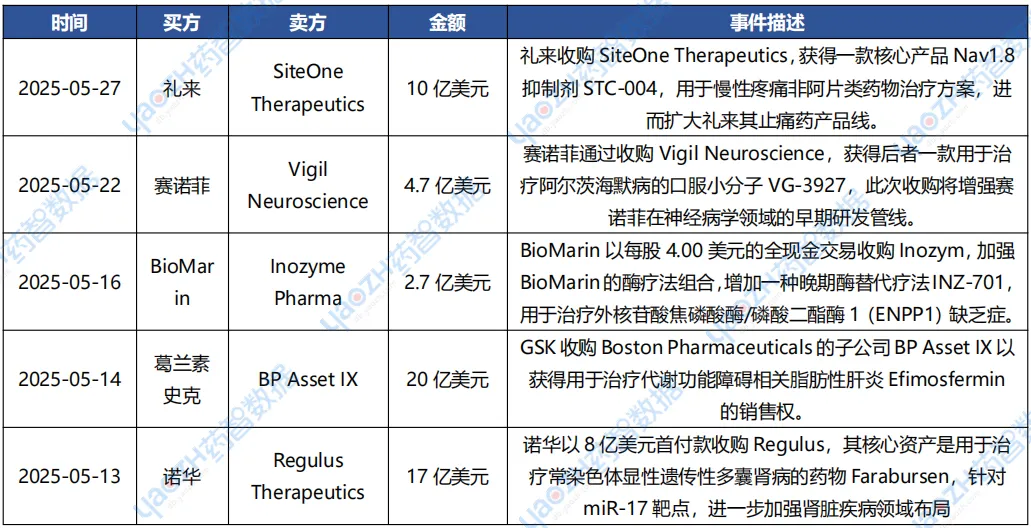 5月重点医药交易事件