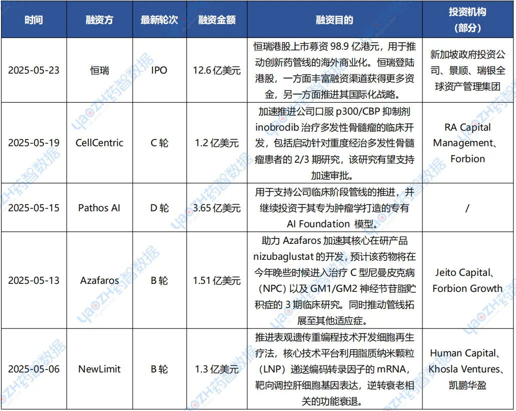 5月重点投融资事件