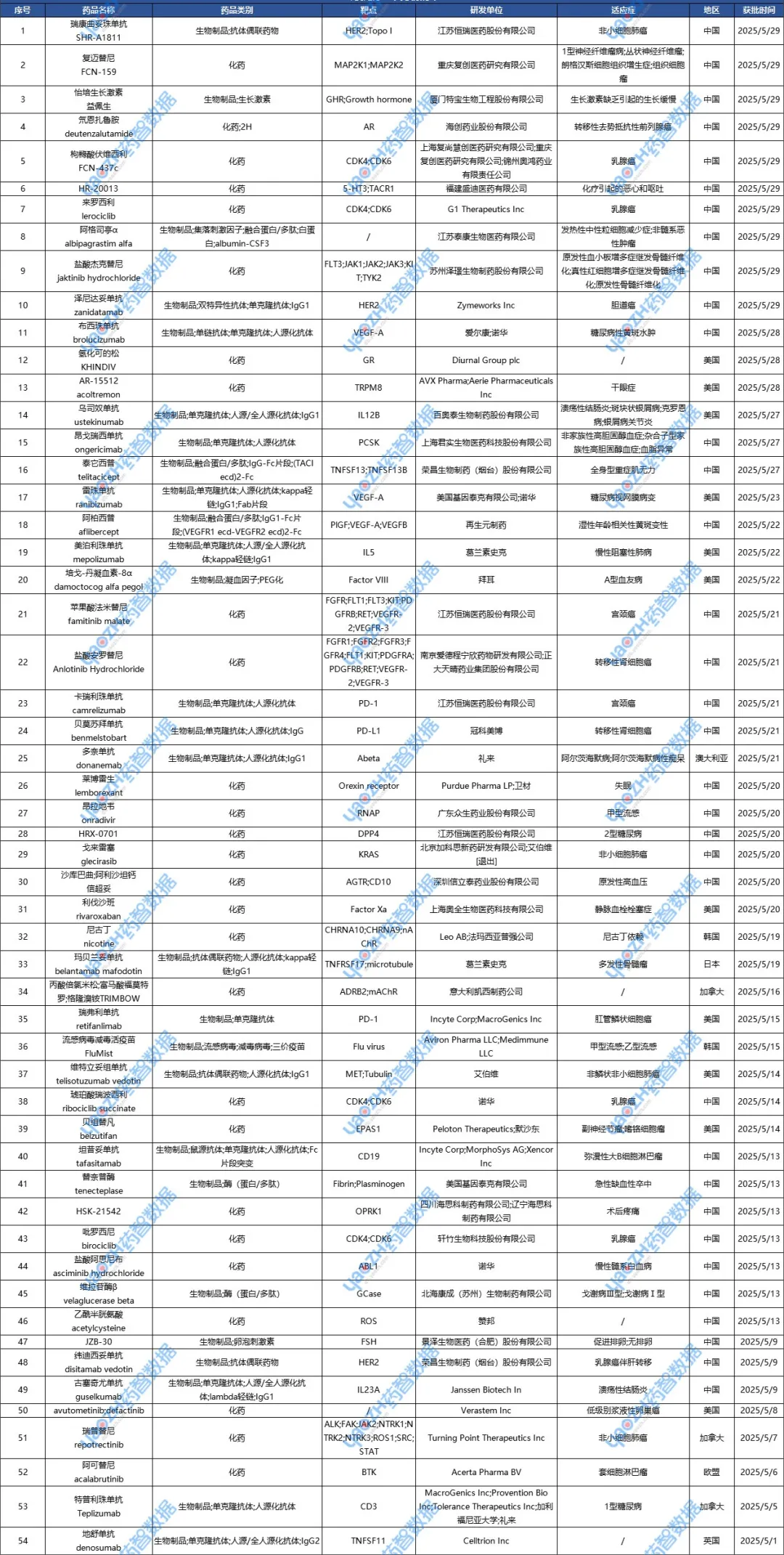 全球新药2025年5月进展概述