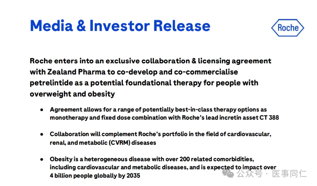 罗氏在减重市场下了一步“奇招”,没跟着 GLP - 1 的风跑。它大手一挥,花了53亿美元与减重领域“黑马”Zealand