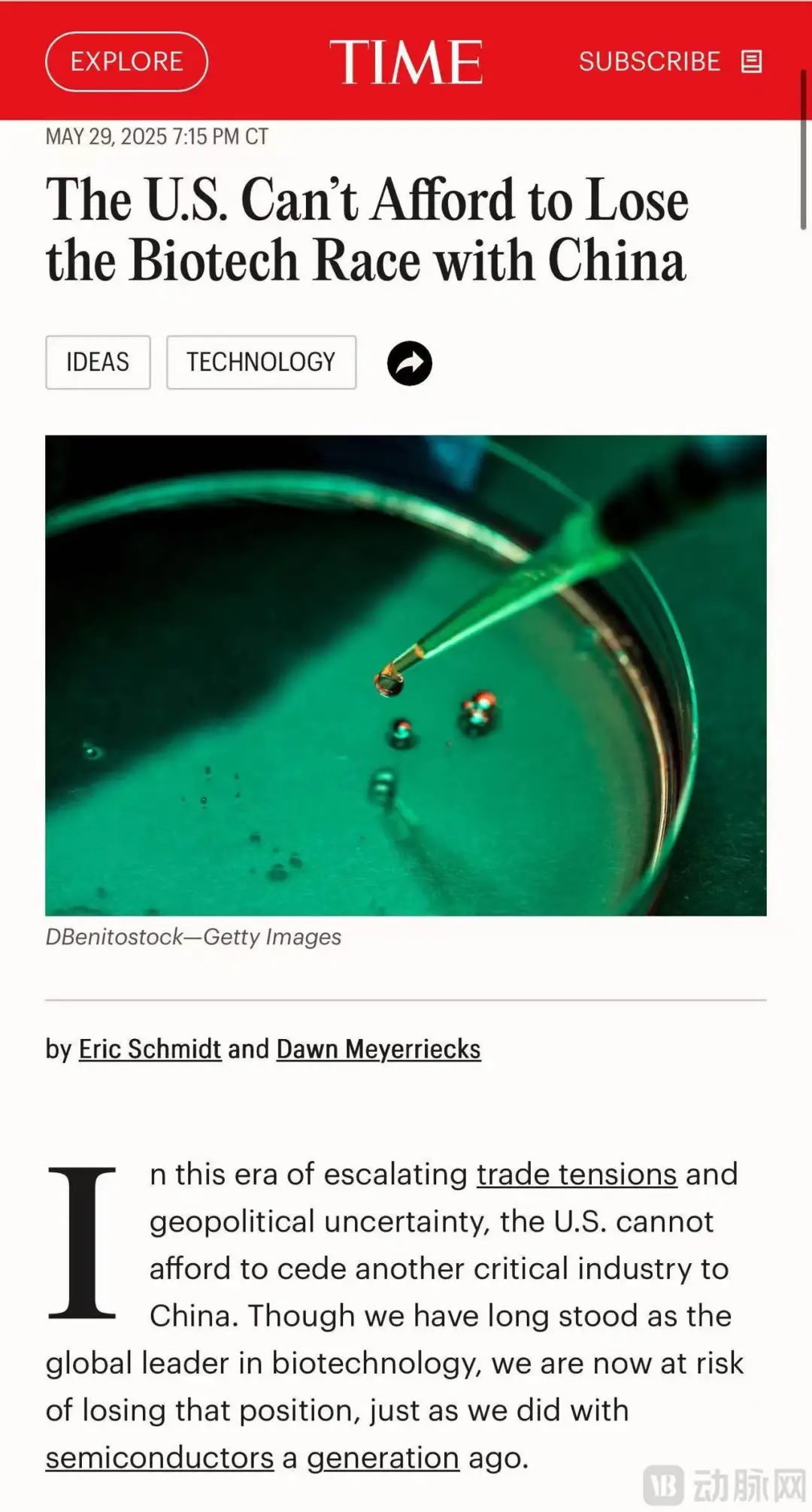 TIME更是直接指出:“几十年前,我们未能维持我们作为半导体制造业全球领导者的地位。这个错误要求我们采取极其昂贵、困难和不确定的措施来弥补损失。如今,当我们在生物技术领域面临类似的风险时,我们绝不能再犯同样的错误。”