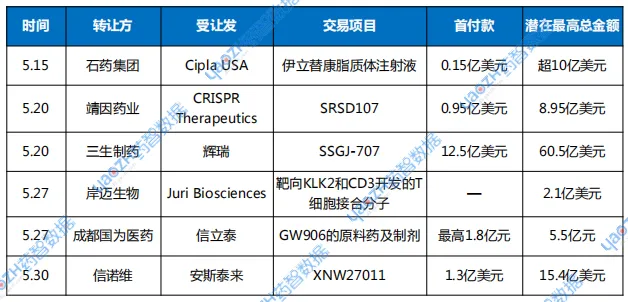 这些数字的背后,是一个个引发市场震动的重磅交易案例。5月20日,三生制药宣布与辉瑞就PD-1/VEGF双抗SSGJ-707在全球(不包括中国内地)的开发、生产、商业化权利达成合作,潜在总金额超60亿美元。