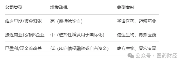 临床后期或接近商业化的公司(如信达生物、再鼎医药)可能继续增发,用于管线推进及国际化布局。