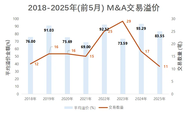 从交易溢价和金额分布来看,这种策略差异也明显反映在估值判断上:部分企业倾向接受更高溢价以获取潜在增长资源,而另一些企业则强调收购的即期价值与运营协同。