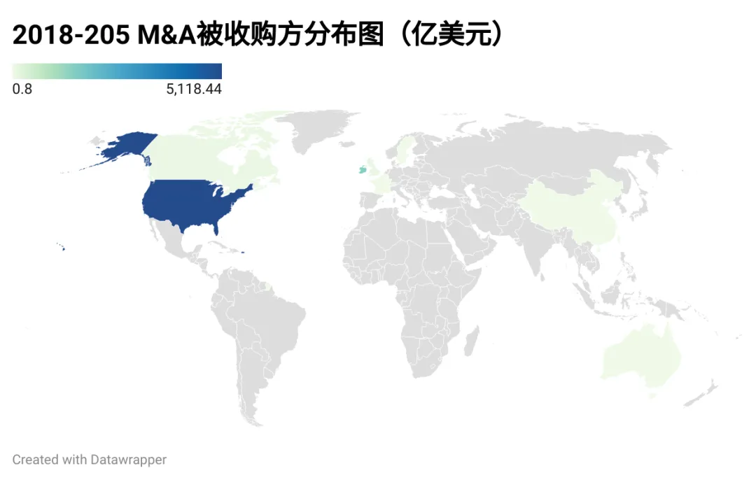 图7. 被收购方国家分布。(数据来源:Biopharma Dive)